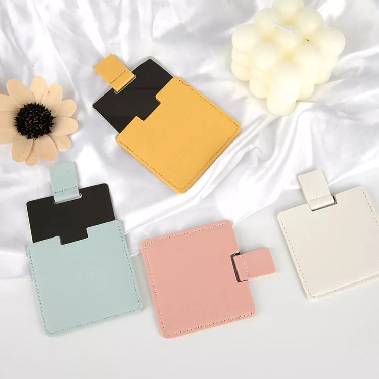 กระจกพกพาขนาดเท่าบัตรเครดิต หุ้มด้วยหนัง PU เนื้อนุ่ม และพื้นผิวสเตนเลสสตีลที่ไม่แตกละเอียด ดีไซน์เพรียวบางและพกพาสะดวกสามารถใส่กระเป๋าสตางค์หรือกระเป๋าถือได้สะดวก เหมาะสำหรับการเติมแต่งระหว่างเดินทาง โลโก้และสีที่ปรับแต่งได้ทำให้เหมาะสำหรับเป็นของขวัญหรือการสร้างแบรนด์