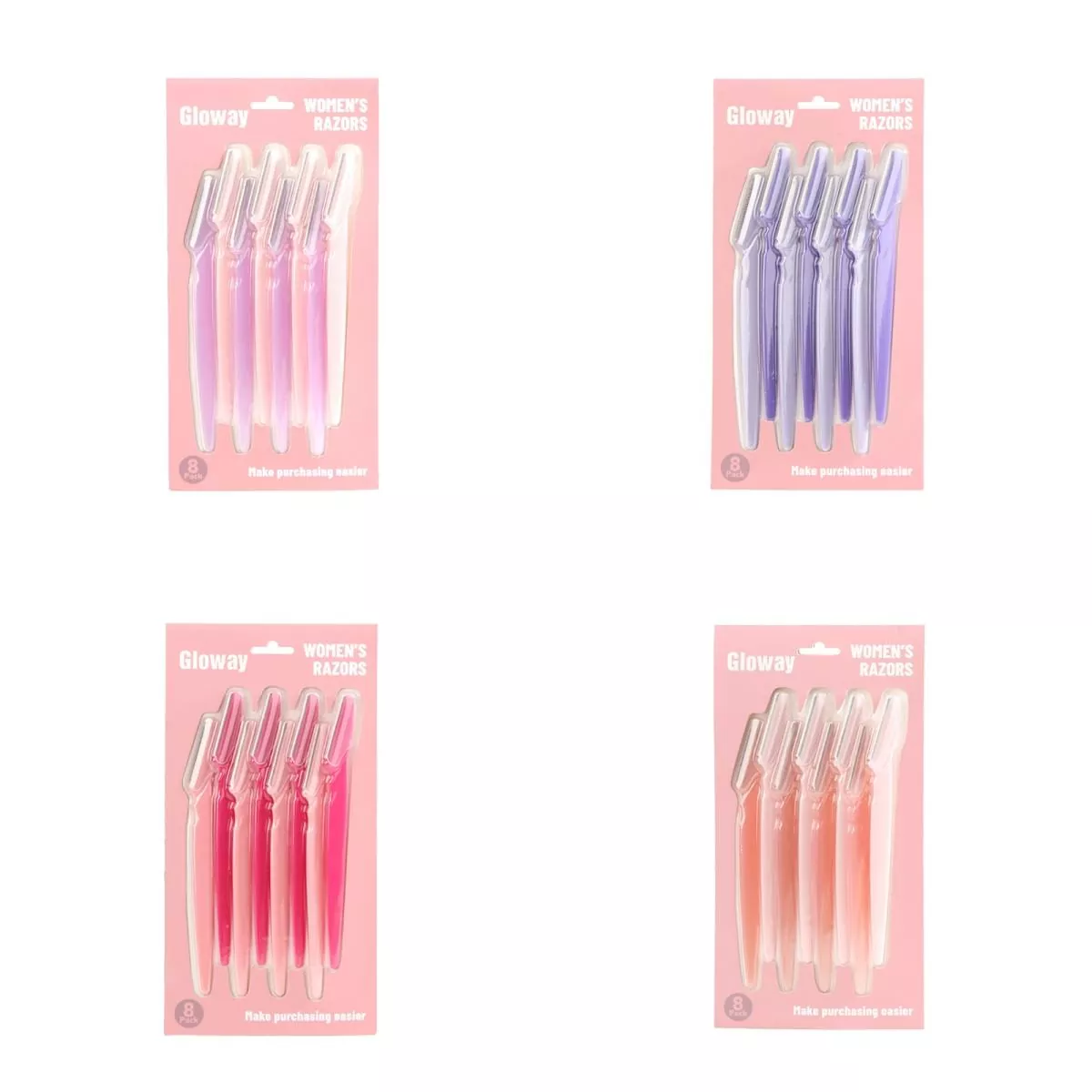 โกนขนคิ้วได้อย่างแม่นยำและไม่เจ็บปวดที่บ้านด้วยที่โกนหนวดคิ้ว GLOWAY Women ออกแบบด้วยใบมีดสเตนเลสสตีลเนื้อดีที่เหมาะกับผิว ช่วยจัดทรงคิ้วและกำจัดขนบนใบหน้าอย่างอ่อนโยนโดยไม่ระคายเคือง เหมาะสำหรับผิวแพ้ง่าย ด้ามจับพลาสติกบางและออกแบบตามหลักสรีระศาสตร์ให้ที่จับที่สะดวกสบายและไม่ลื่นเพื่อการควบคุมที่ง่ายดาย มีจำหน่ายในชุดสีพาสเทลสีอ่อน (8 แพ็ค) มาในบรรจุภัณฑ์ขนาดพกพา เหมาะสำหรับการเดินทางและเติมแต่งในชีวิตประจำวัน ความงามที่ต้องมีซึ่งจำเป็นสำหรับผลลัพธ์คุณภาพระดับร้านทำผมที่ง่ายดายทุกที่ทุกเวลา