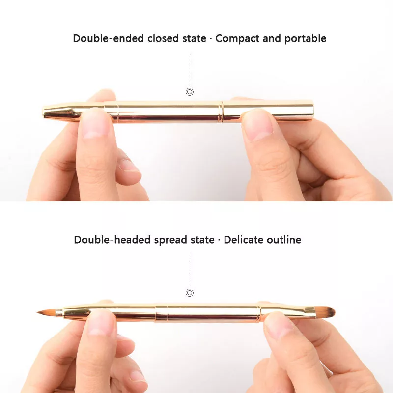 แปรงแต่งหน้าแบบลิปเดี่ยวนี้มีการออกแบบปลายคู่พร้อมขนแปรงสังเคราะห์ที่อ่อนนุ่ม มีปลายที่แม่นยำสำหรับการร่างเส้นริมฝีปากและแปรงแบนสำหรับเติมสี พร้อมที่จับโลหะเพรียวบางเพื่อให้จับง่ายและใช้งานได้ทุกที่